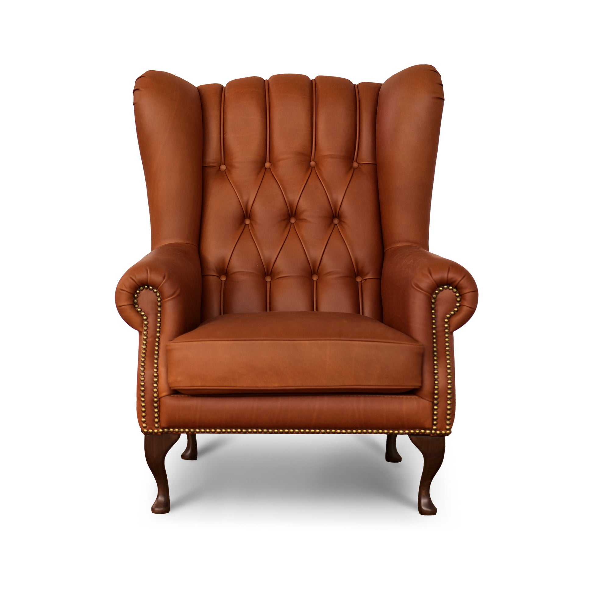 Die handgefertigte Vollnarbenlederpolsterung im alten amerikanischen Stil verleiht den klassischen Linien des Sessels Wert und Einzigartigkeit.