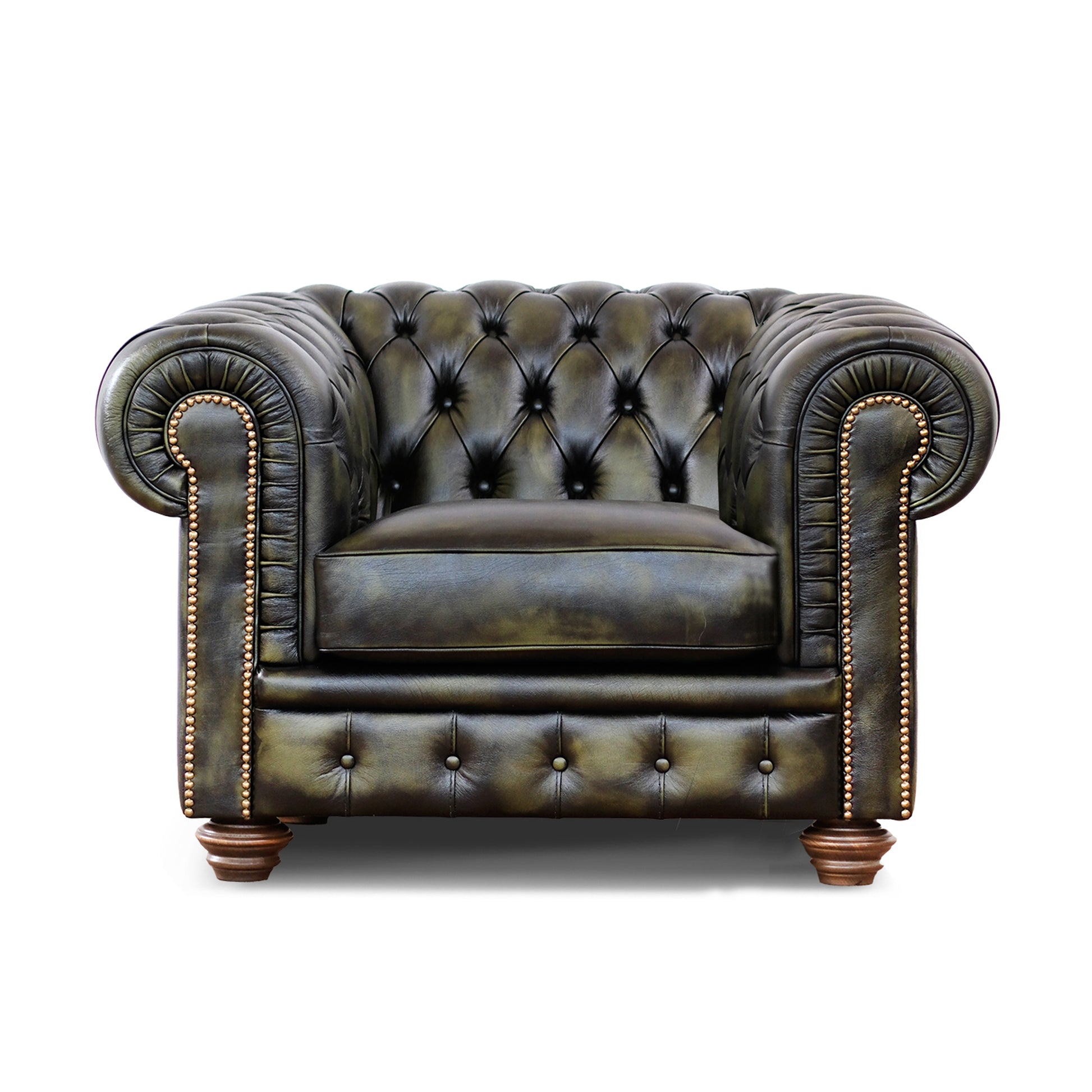 Canapé Chesterfield en cuir pleine fleur de qualité supérieure – Finitions emblématiques et raffinées