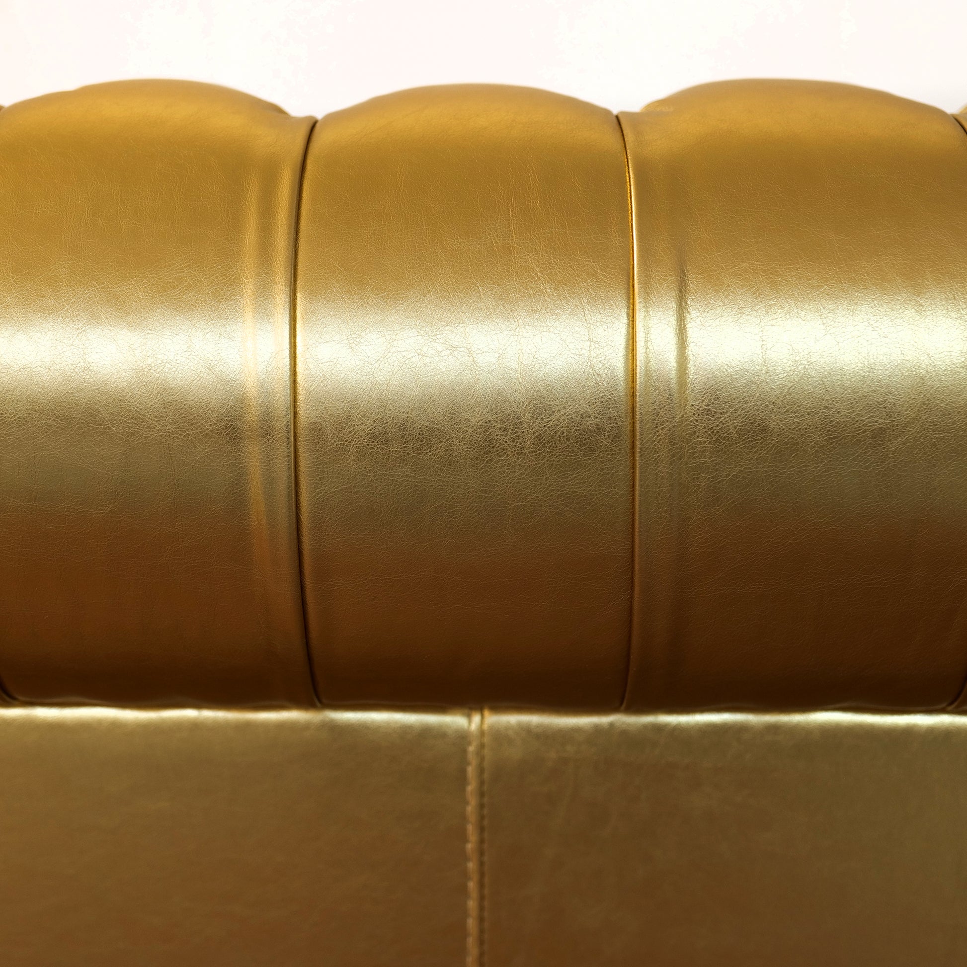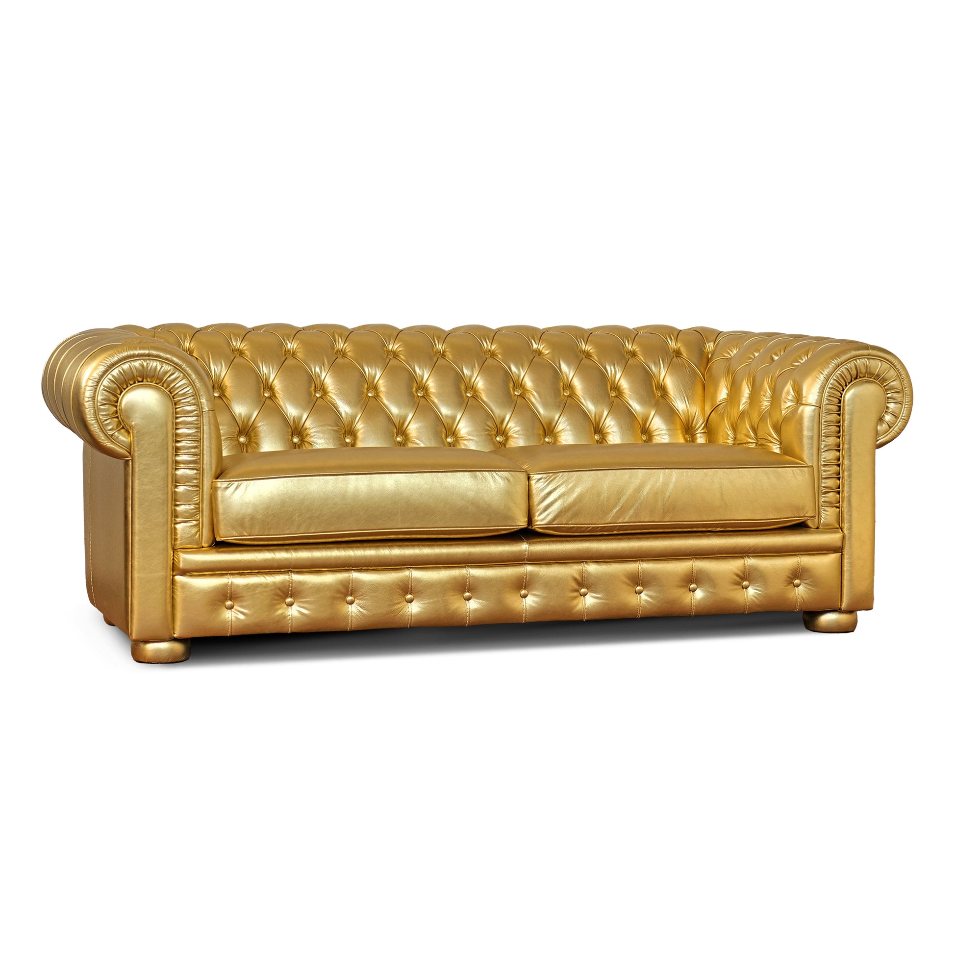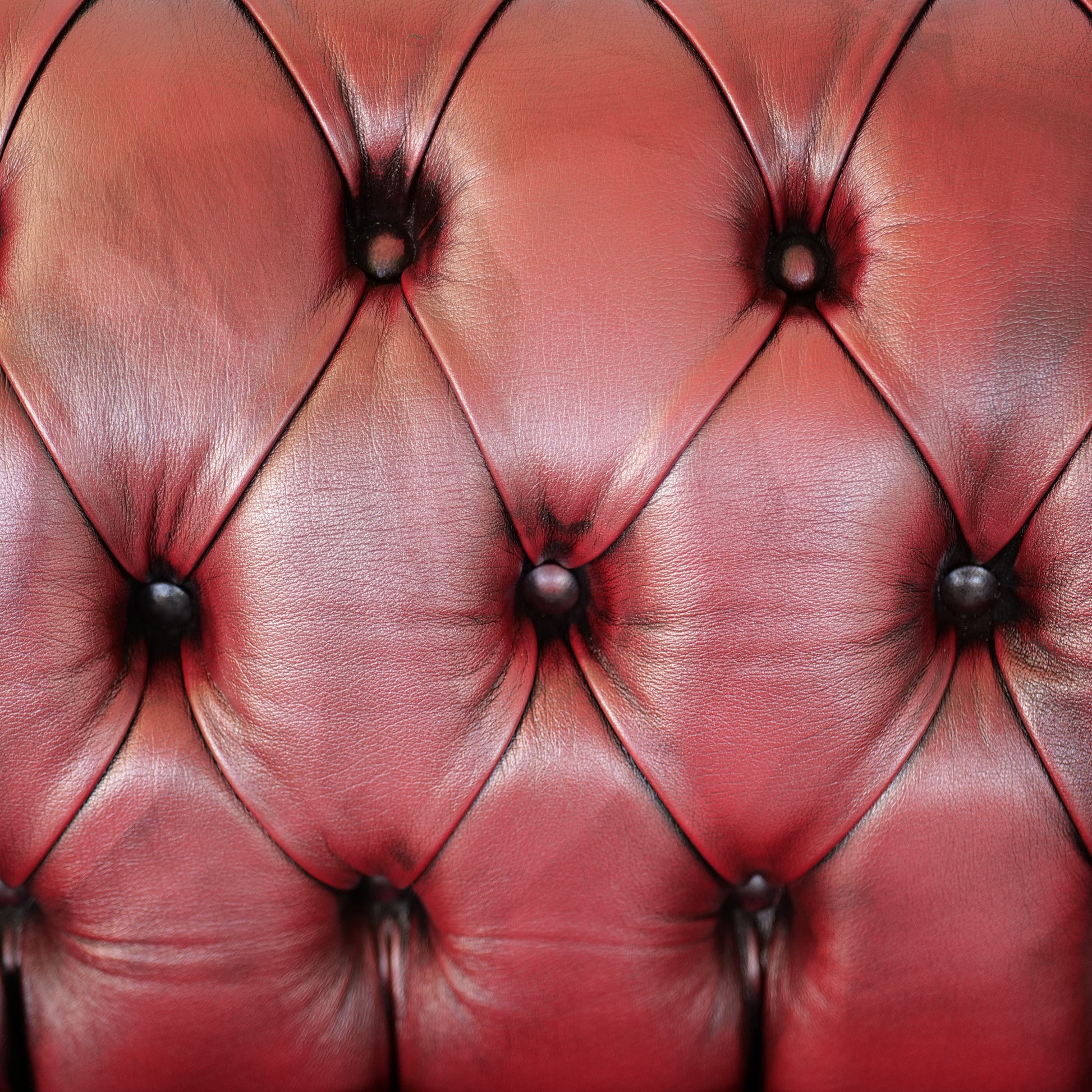 Divano modello Chesterfield imbottito e rivestito in pelle primo fiore.