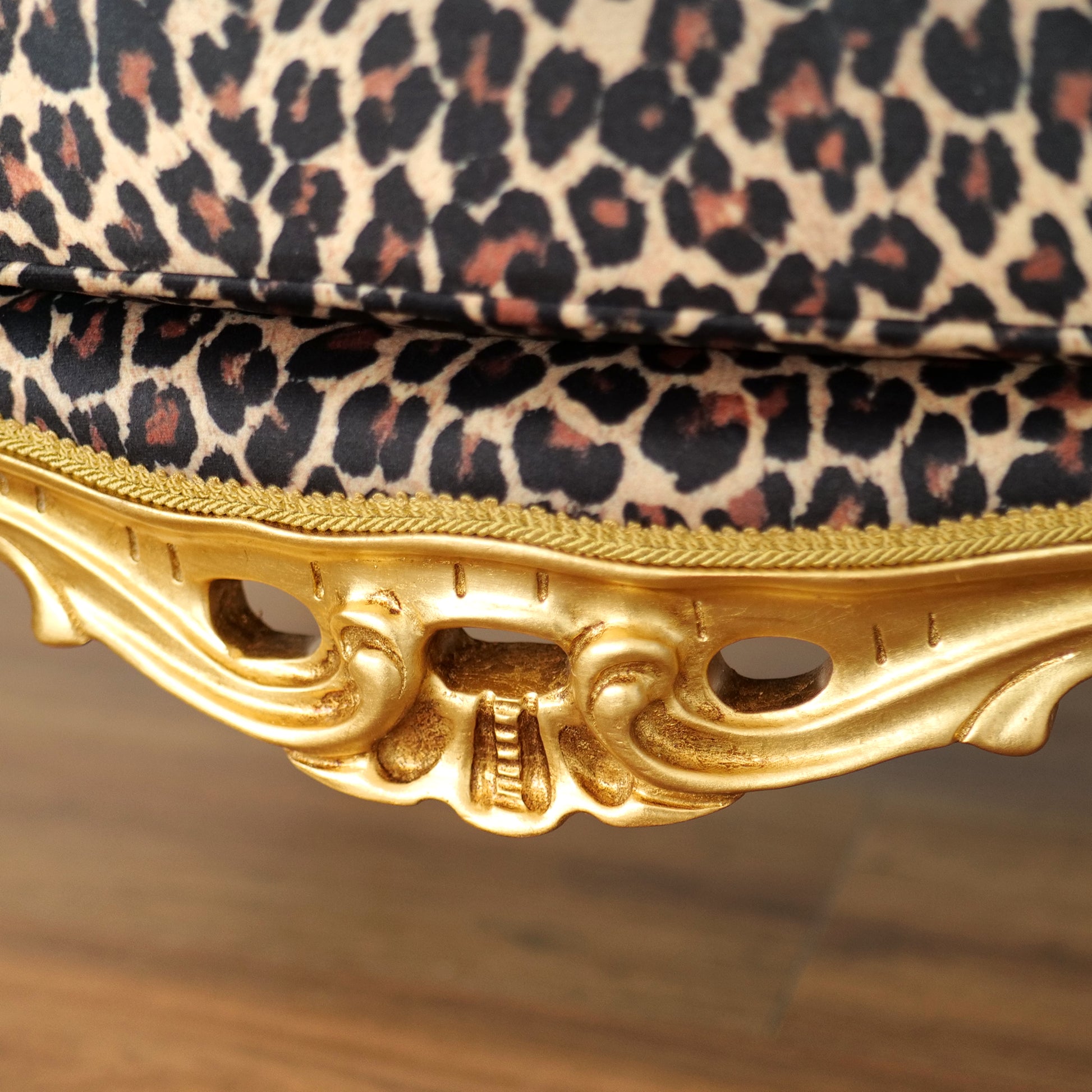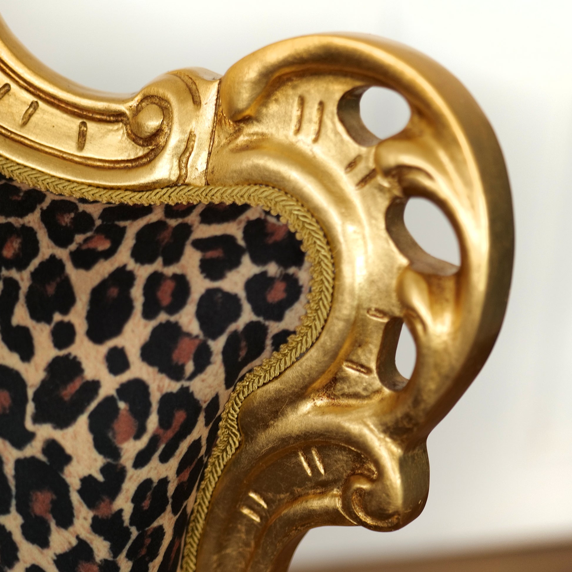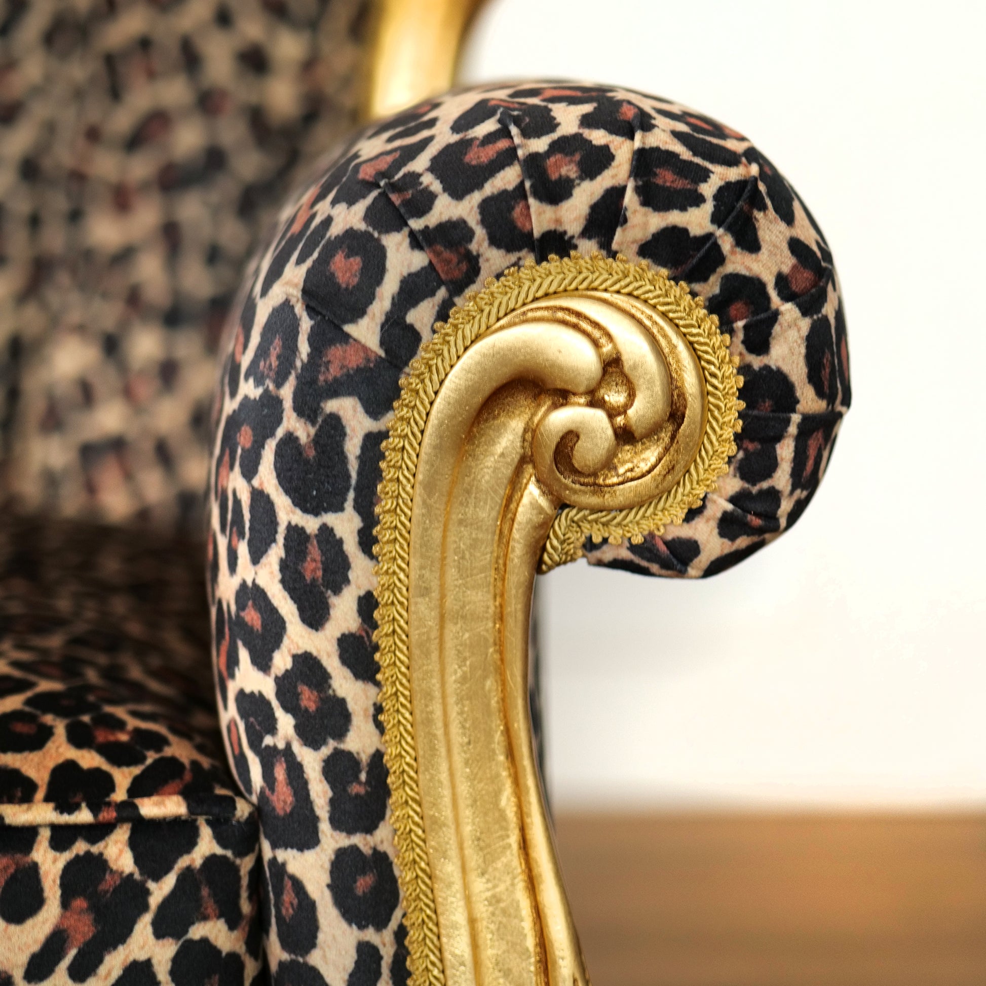 La poltrona Caterina cattura lo sguardo e definisce l’ambiente con una presenza scenica unica. Le sue linee classiche, impreziosite da una raffinata struttura con finitura foglia oro finemente lavorata, incontrano l’energia decisa del rivestimento, creando un equilibrio perfetto tra tradizione e personalità contemporanea.