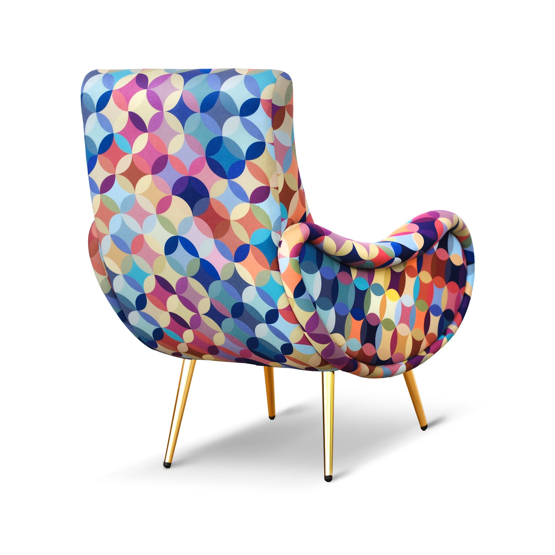 Poltrona dal design vintage anni '50 imbottita in poliuretano ad alta densità e rivestita in tessuto o velluto premium.