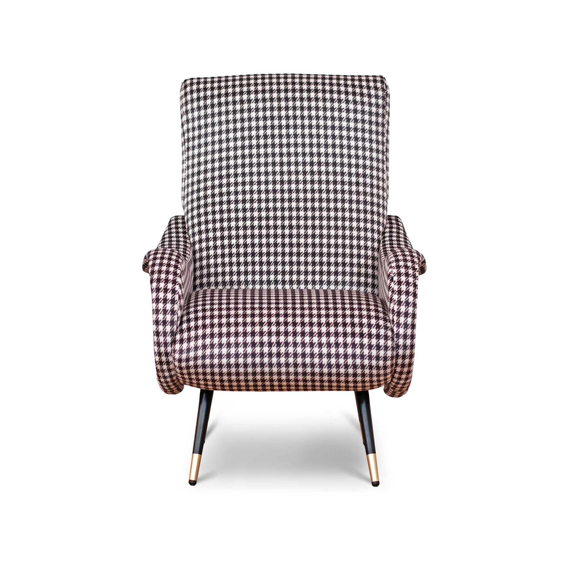 Caratterizzata da forme sinuose ed equilibrate la poltrona Miss è il fiore all’occhiello in living e soggiorni dal design vintage e ricercato. Ispirata al design dei meravigliosi anni ’50, irrinunciabile per tutti gli appassionati di modernariato, è resa ancora più unica dall'iconico rivestimento in tessuto pied de poule bianco e nero